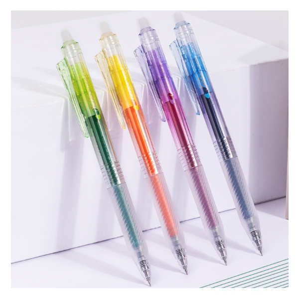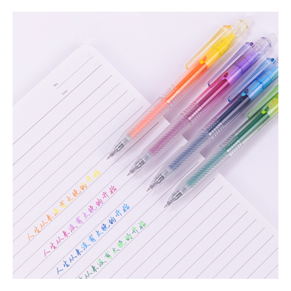 Dimensions et spécifications : Pointe de l’aiguille, 0,5 mm Couleur de l'encre : violet, orange, bleu, vert Stylo gel effaçable Encre à séchage rapide, ultra-lisse et à faible odeur Poignée souple pour une expérience d'utilisation confortable Pointe d'aiguille pour une écriture ultra-fluide Conception rétractable avec clip pour stylo pour une bonne portabilité Peut contenir de petites pièces, ne convient pas aux enfants de moins de 3 ans